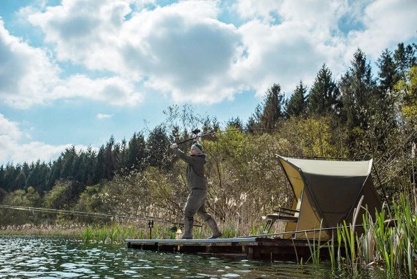 The Day Shelter Lite is geoptimaliseerd zodat je op de oever beschermd bent tegen de elementen, dit dankzij een uniek frame en een eigen systeem. Dit systeem levert extra ruimte op in de tent en het verhoogt de stabiliteit op dagen met veel wind. Dit is onze lichtste Day Shelter tot nu toe, ze is ook nog eens compacter samen te pakken dan veel andere shelters. De unieke vorm biedt veel ruimte boven je hoofd, zelfs bij het gebruik van extra grote visstoelen.