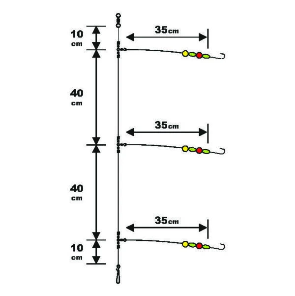 Deze kant en klare onderlijnen van Sunset brengen jou alle gemak en zekerheid. Ze zijn 1 meter lang en gemaakt van 100% fluorocarbon. Ze zijn eveneens voorzien van drie zijlijnen van 70cm en gekleurde kralen. Het voordeel van fluorocarbon is dat het nagenoeg dezelfde brekingsindex heeft als het water en daardoor zo goed als onzichtbaar is. Ideaal voor snel schrikkende vissen. Ze zijn speciaal gemaakt voor het strandvissen. De haken met lange schacht zijn vlijmscherp en gecoat met zwart nikkel voor extreme duurzaamheid!