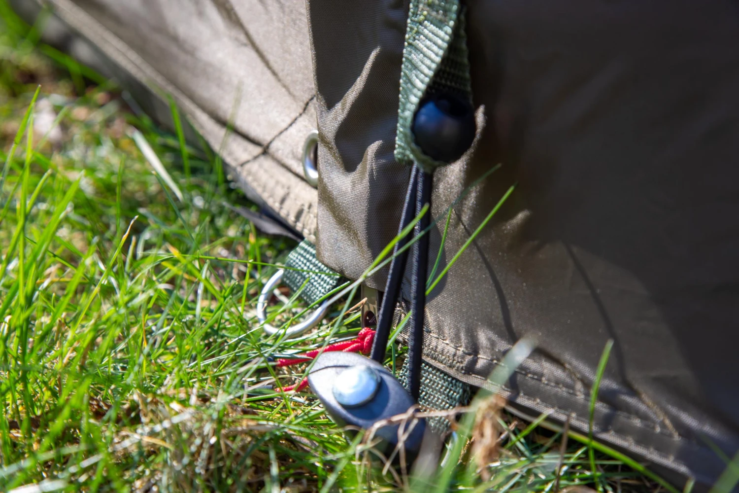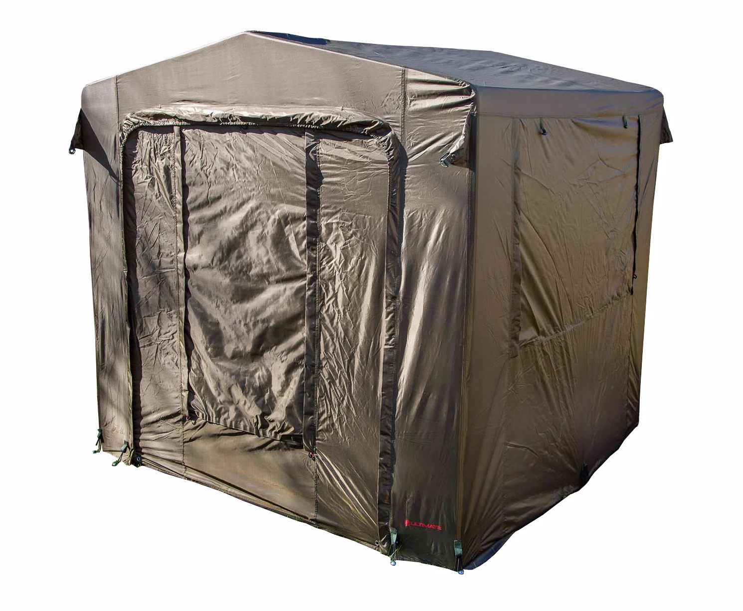 Dit Ultimate Cook & Chill House is perfect voor langere sessies met meerdere personen en kan worden ingezet als keuken, extra opslag of om samen te chillen. De ruime en hoge tent heeft een metalen frame van versterkte buizen met extreme stijfheid en sterkte en is zeer snel op te zetten. Met spanpunten in elke hoek kun je de tent aan de grond bevestigen voor extra stabiliteit en als extra veiligheid tegen windstoten. Dankzij het 3000HH polyester kan er geen spatje water binnendringen en blijf je altijd droog. Aan beide kanten van de tent bevindt zich een ingang en het raam heeft een muggengaas optie. Dit Ultimate Cook & Chill House wordt geleverd inclusief T-haringen voor zwaar gebruik en een stevig en ruim grondzeil.